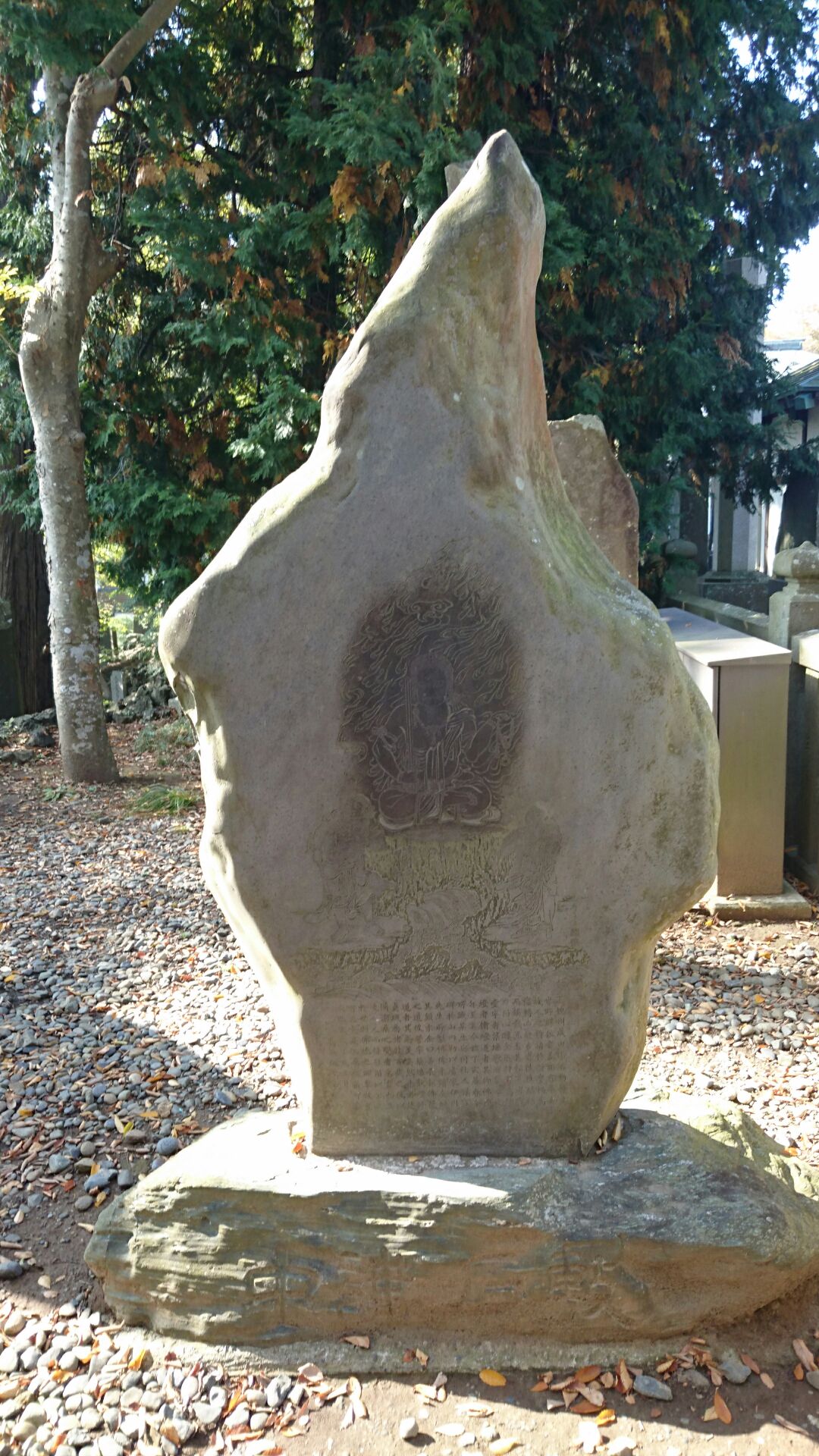右の写真がその場所です。知ってる人がお参りして、石をなででいるのでその部分が